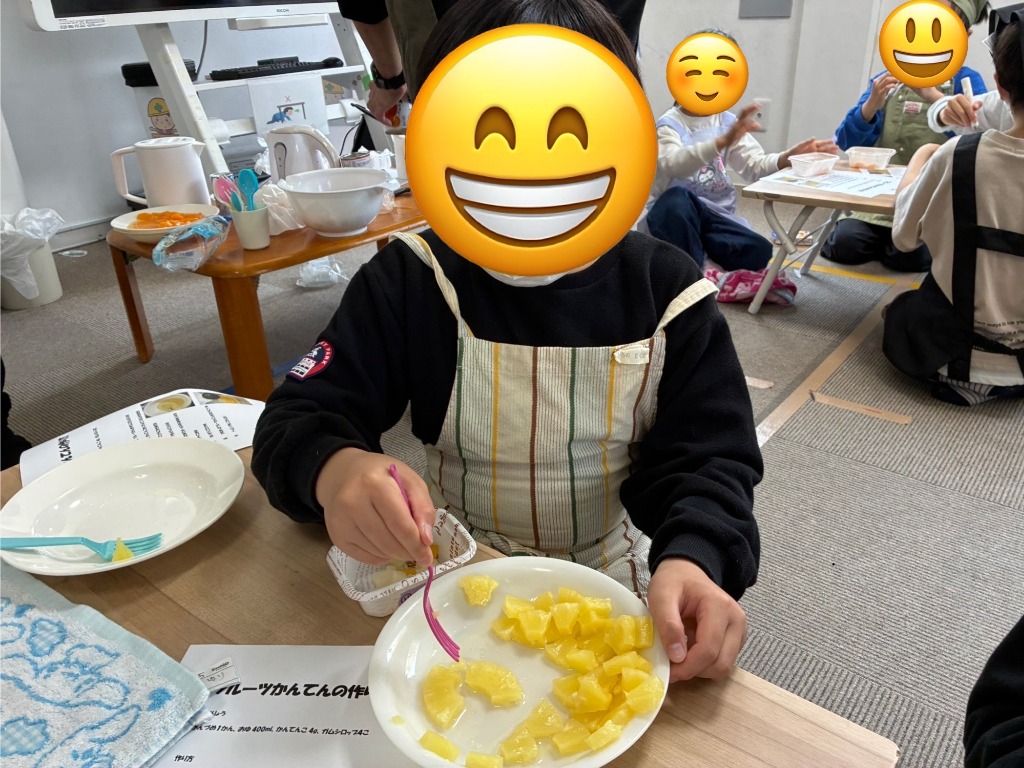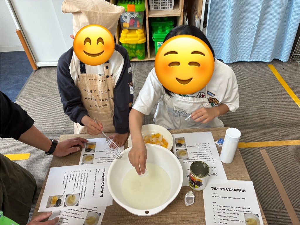 グループで協力しながらクッキングを行い、おいしいフルーツ寒天ができました🍓