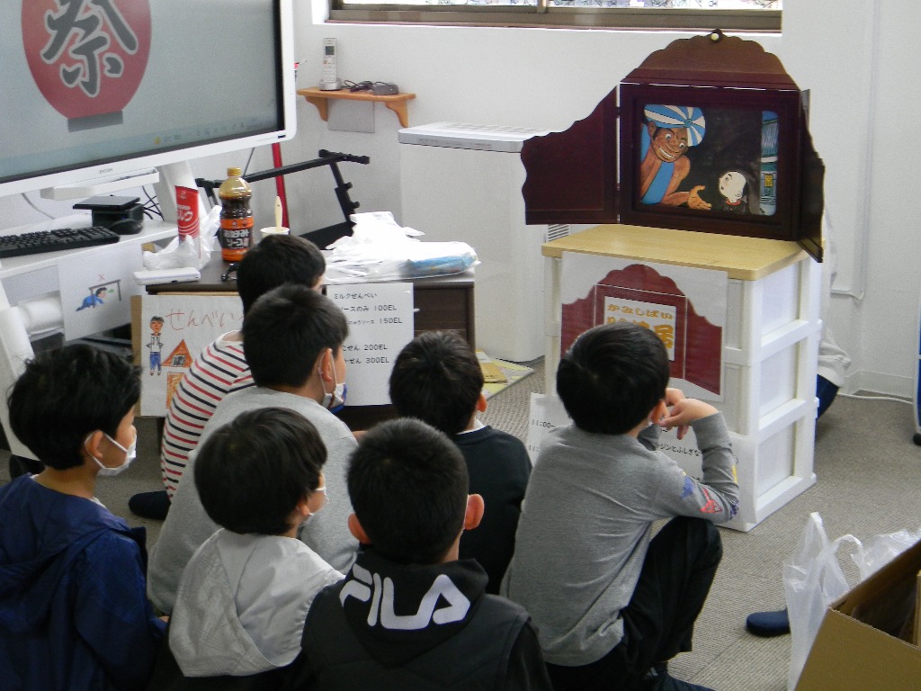 紙芝居が終わった後は、よく聞いていた人に、せんべい屋のミルクせんべいが配られました。すでにチケットがなくなった人でも、最後まで楽しむことができました。