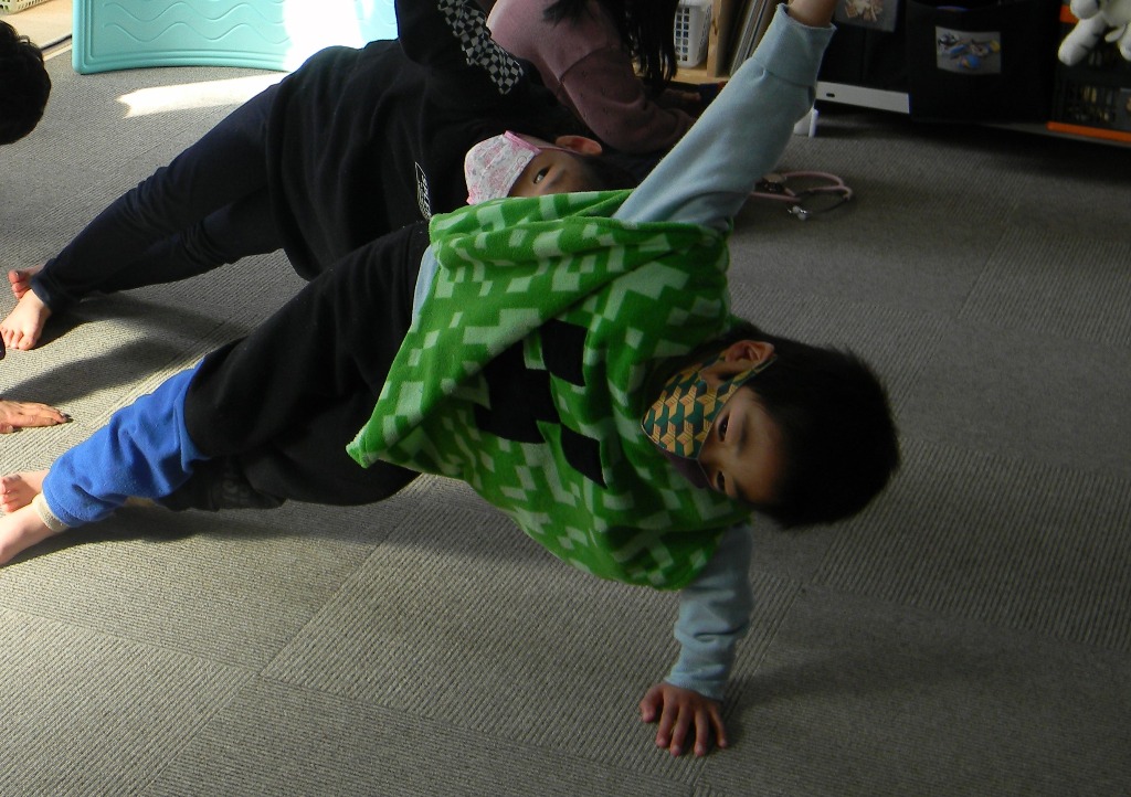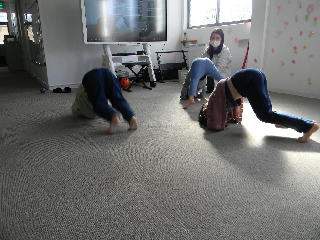 ハンカチ落としやダンスなども取り入れて、体を動かす楽しさを少しずつでも実感できるように取り組んでいます。